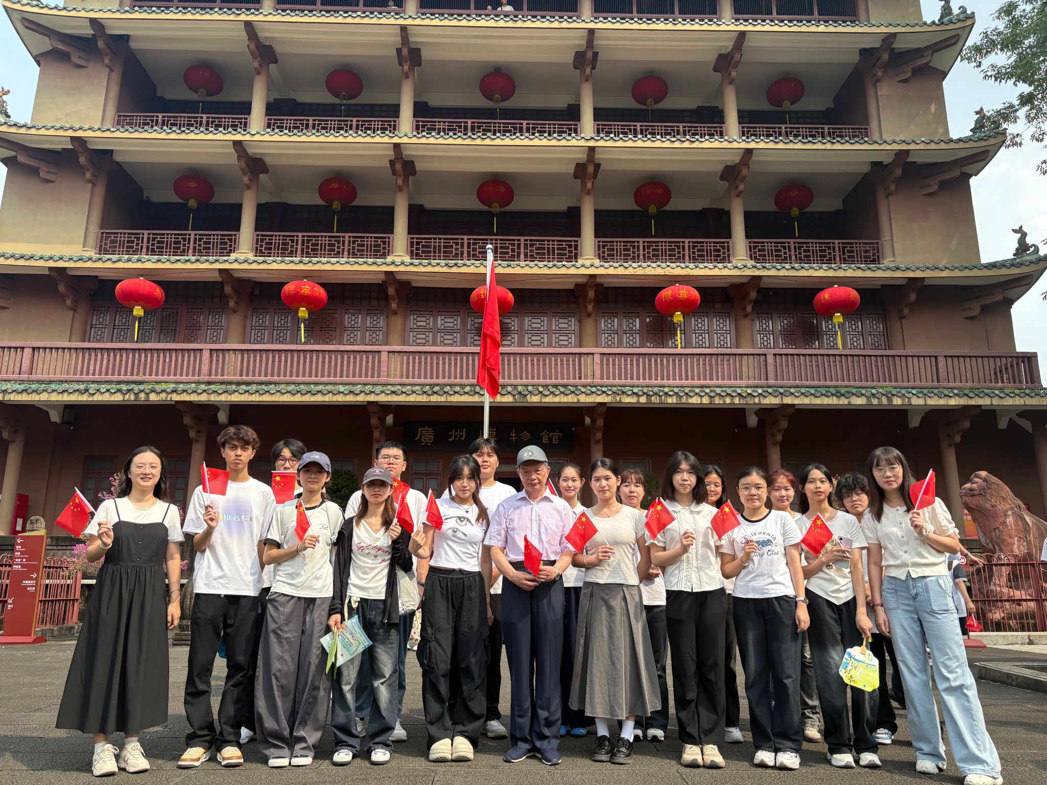 10月1日上午,广州博物馆在镇海楼广场举行升旗仪式,庆祝中华人民共和国成立76周年。广州博物馆是学校共建爱国主义教育基地单位,应其邀请,学校关工委副主任、原副校长余嘉强,社会工作学院、健康产业学院师生代表参加活动。
